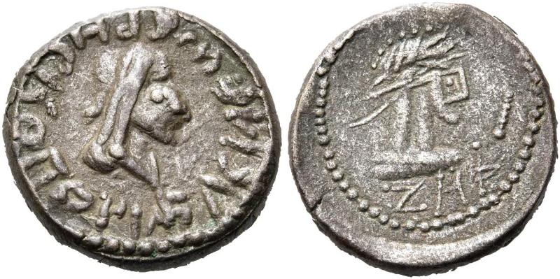 - Бюст императора вправо, год ZΜΦ (547 г. б.э.), справа «палица»