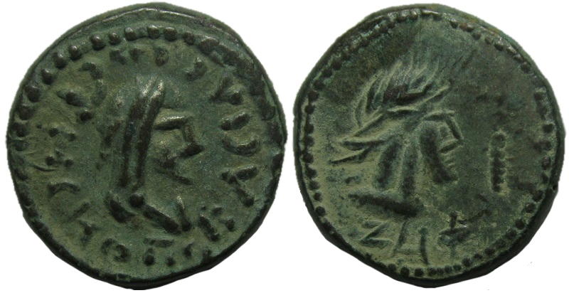 - Бюст императора вправо, год ZΜΦ (547 г. б.э.), справа «палица»