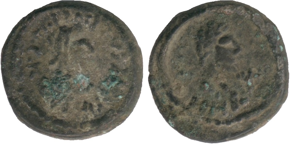 - Бюст императора вправо, год ΗΜΦ (548 г.б.э.), справа «трезубец»