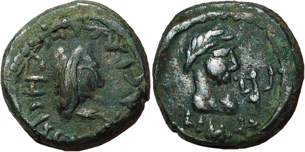 - ΒΑCΙΛΕωC ΡΗCΚΟΠΟΡ. Бюст царя вправо.