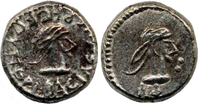 Монета опубликована: Материалы по археологии, истории и этнографии Таврии. Выпуск XXIV. 2019г. Смекалова Т.Н., Абрамзон М.Г., Сапрыкина И.А., Антипенко А. В., Лобода А. Ю., Быковская Н. В., Гунчина О. В. "Новые данные о чеканке Рискупорида V и Фарсанза по материалам исследования состава сплава монет из Керченских кладов 1964 г. и 1988 гг." Рис. 3 а.