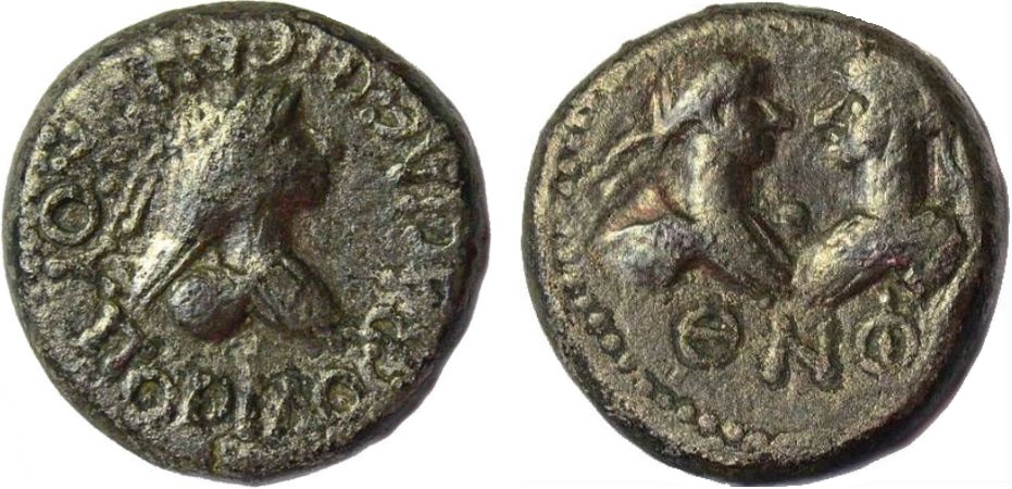 - Два бюста, между ними «точка», год ΘΝΦ (559 г. б. э.)