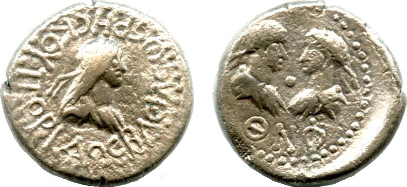 - Два бюста, между ними «точка», год ΘΝΦ (559 г. б. э.)