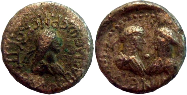 - Два бюста, между ними «точка», год ΘΝΦ (559 г. б. э.)