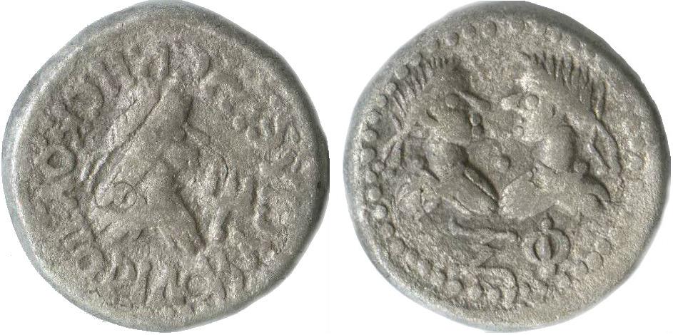 - ΒΑCΙΛΕωC ΡΗCΚΟΥΠΟΡΙΔΟ. Бюст царя вправо, «трезубец»