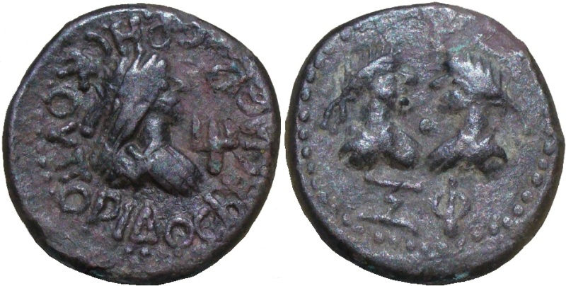 - ΒΑCΙΛΕωC ΡΗCΚΟΥΠΟΡΙΔΟ. Бюст царя вправо, «трезубец»