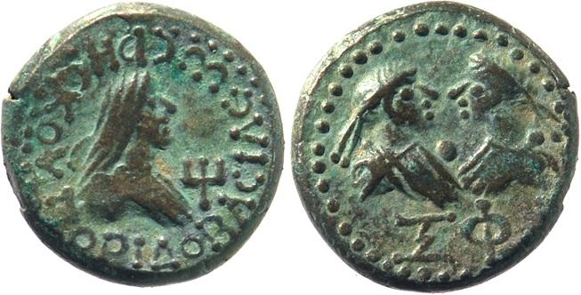 - ΒΑCΙΛΕωC ΡΗCΚΟΥΠΟΡΙΔΟ. Бюст царя вправо, «трезубец»