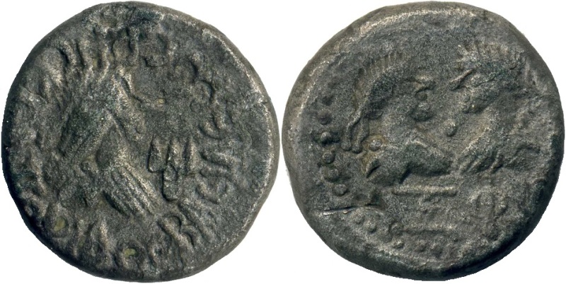 - ΒΑCΙΛΕωC ΡΗCΚΟΥΠΟΡΙΔΟ. Бюст царя вправо, «трезубец»