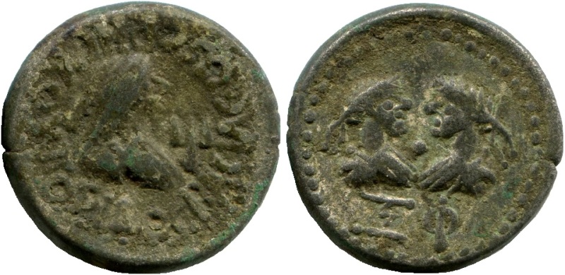 - ΒΑCΙΛΕωC ΡΗCΚΟΥΠΟΡΙΔΟ. Бюст царя вправо, «трезубец»