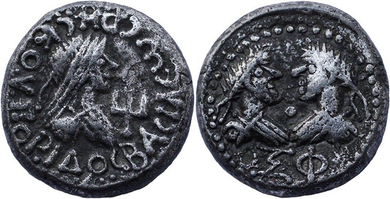 - ΒΑCΙΛΕωC ΡΗCΚΟΥΠΟΡΙΔΟ. Бюст царя вправо, «трезубец»