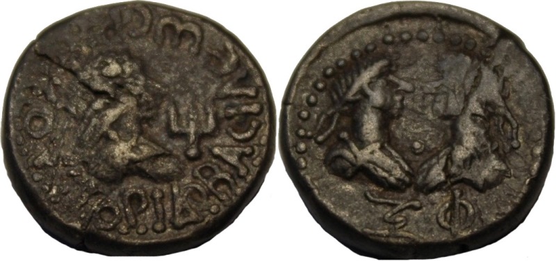 - ΒΑCΙΛΕωC ΡΗCΚΟΥΠΟΡΙΔΟ. Бюст царя вправо, «трезубец»