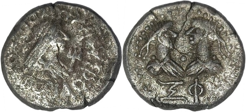 - Два бюста, между ними «точка»,год ΞΦ (560 г. б. э.)