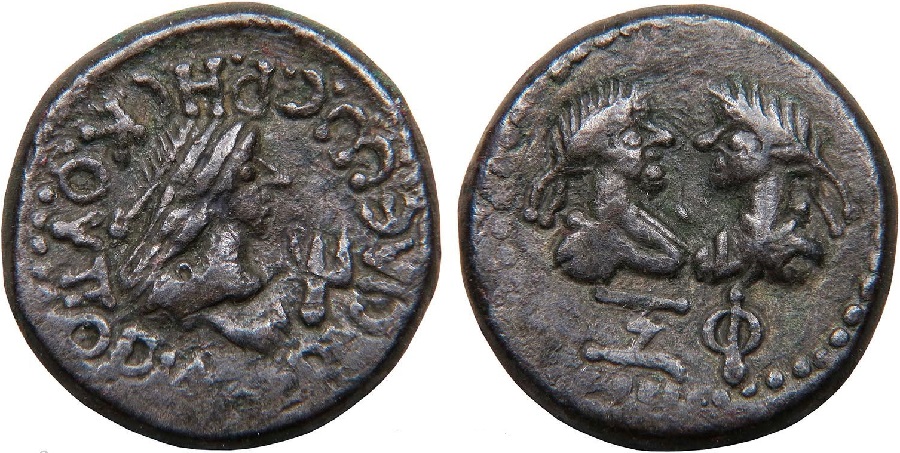 - ΒΑCΙΛΕωC ΡΗCΚΟΥΠΟΡΙΔΟ. Бюст царя вправо, «трезубец»