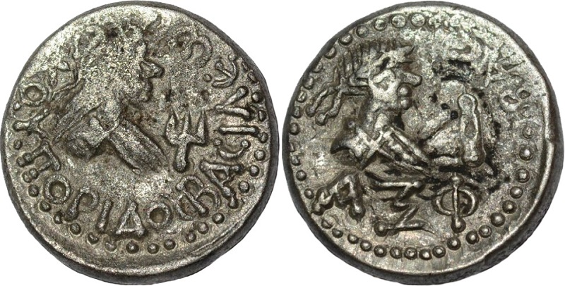 - ΒΑCΙΛΕωC ΡΗCΚΟΥΠΟΡΙΔΟC. Бюст царя вправо, справа «трезубец»