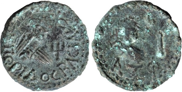- ΒΑCΙΛΕωC ΡΗCΚΟΥΠΟΡΙΔΟC. Бюст царя вправо, справа «трезубец»