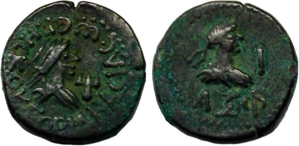 - ΒΑCΙΛΕωC ΡΗCΚΟΥΠΟΡΙΔΟC. Бюст царя вправо, справа «трезубец»