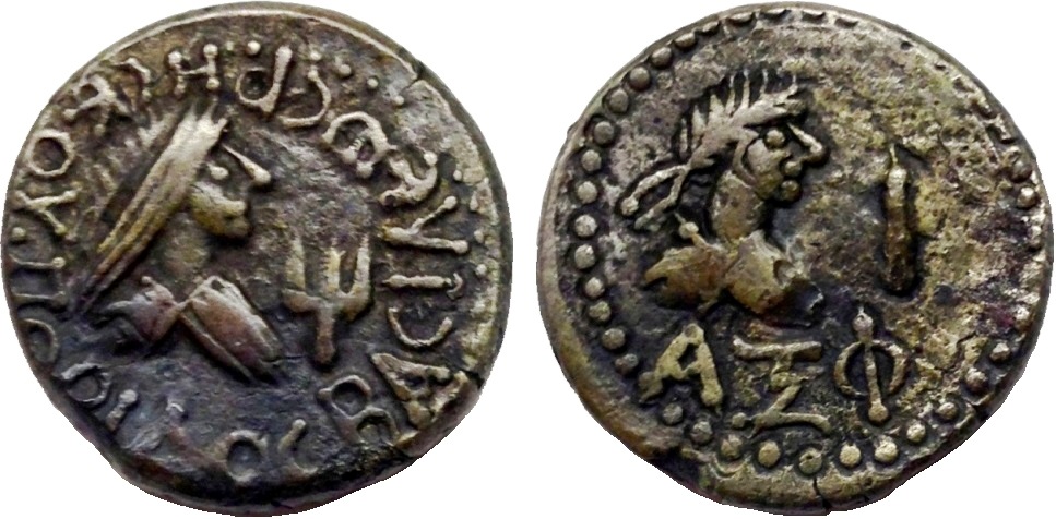 - ΒΑCΙΛΕωC ΡΗCΚΟΥΠΟΡΙΔΟC. Бюст царя вправо, справа «трезубец»