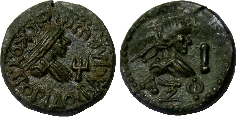 - ΒΑCΙΛΕωC ΡΗCΚΟΥΠΟΡΙΔΟC. Бюст царя вправо, справа «трезубец»