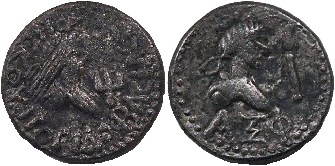 - ΒΑCΙΛΕωC ΡΗCΚΟΥΠΟΡΙΔΟC. Бюст царя вправо, справа «трезубец»