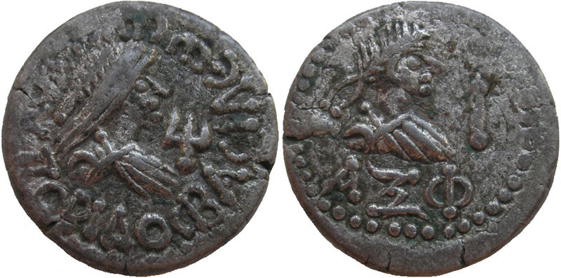 - ΒΑCΙΛΕωC ΡΗCΚΟΥΠΟΡΙΔΟC. Бюст царя вправо, справа «трезубец»