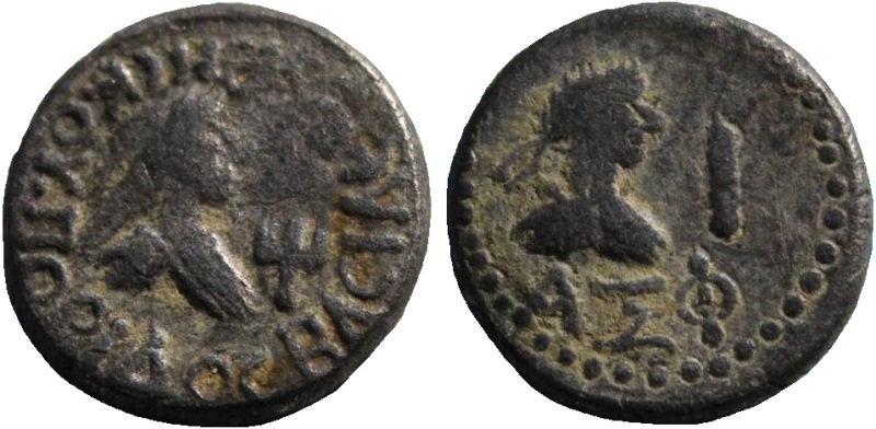 - ΒΑCΙΛΕωC ΡΗCΚΟΥΠΟΡΙΔΟC. Бюст царя вправо, справа «трезубец»