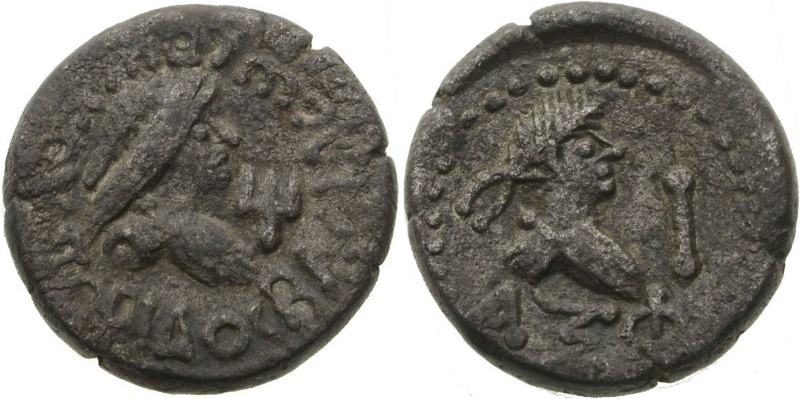 - ΒΑCΙΛΕωC ΡΗCΚΟΥΠΟΡΙΔΟC. Бюст царя вправо, справа «трезубец»