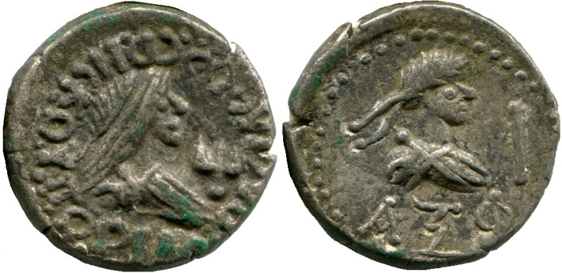 - Бюст вправо, год ΑΞΦ (561 г. б. э.), справа Ι