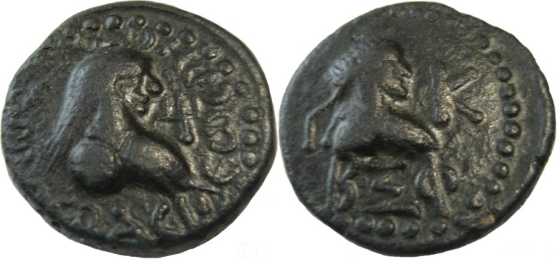 ΒΑCΙΛΕωC ΡΗСΚΟΥΠΟΡΙΔΟС. Бюст царя вправо, справа трезубец