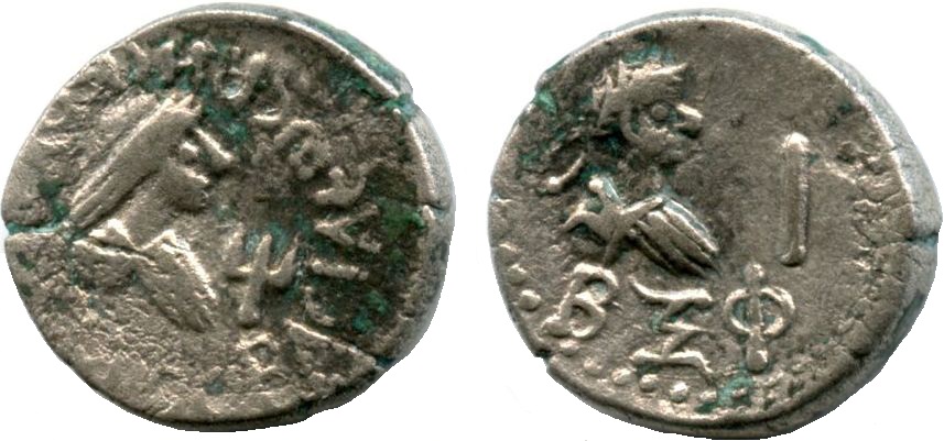 Бюст императора вправо, год ΒΞΦ (562 г. б. э.), справа Ι