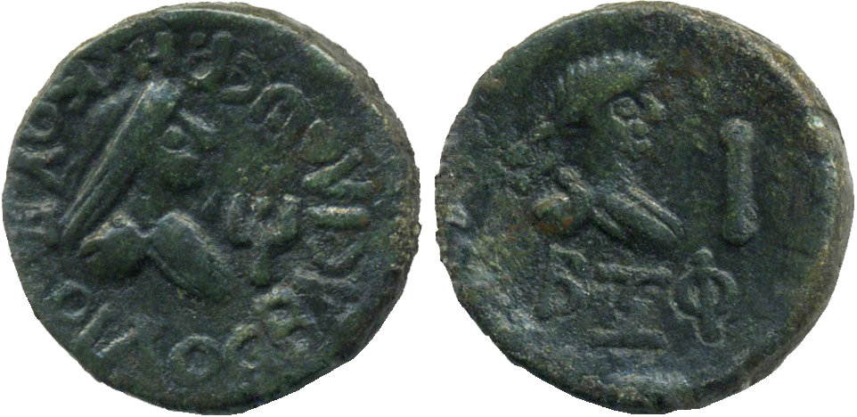 Бюст императора вправо, год ΒΞΦ (562 г. б. э.), справа Ι