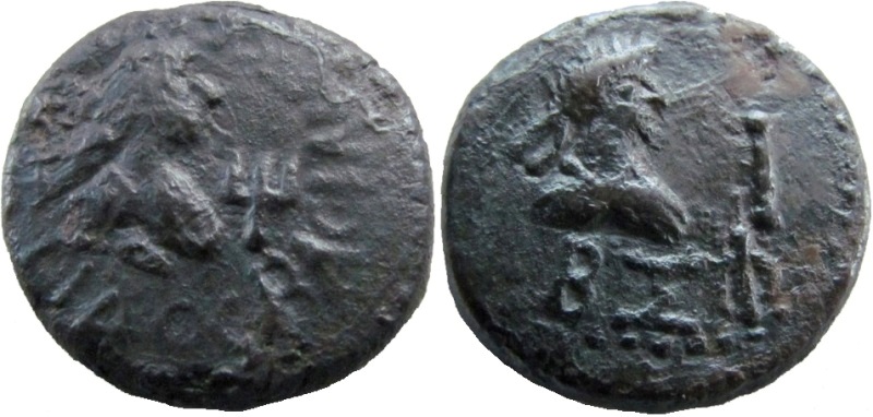 ΒΑCΙΛΕωC ΡΗCΚΟΥΠΟΡΙΔΟC. Бюст царя вправо, справа «трезубец»