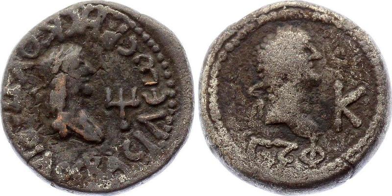 - Бюст императора вправо, внизу год ΓΞΦ (563 г. б. э.), справа К