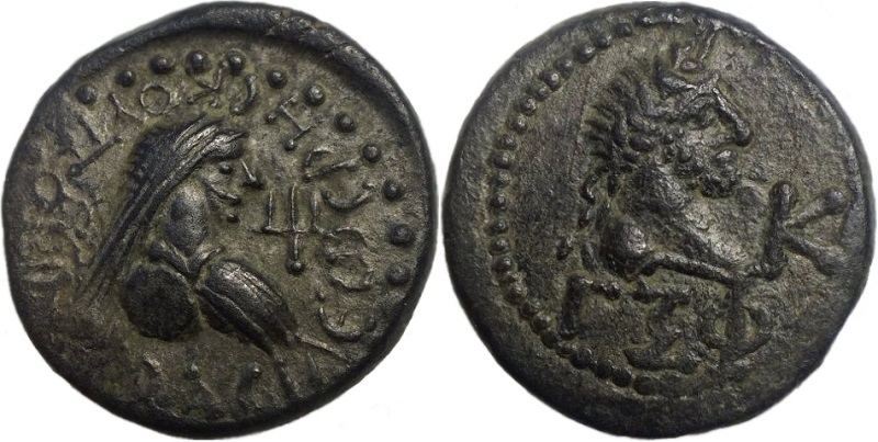 - ΒΑCΙΛΕωC ΡΗСΚΟΥΠΟΡΙΔΟС. Бюст царя вправо, справа трезубец