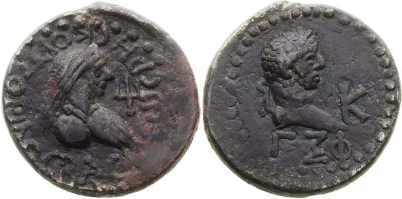 - Бюст императора вправо, внизу год ΓΞΦ (563 г. б. э.), справа К