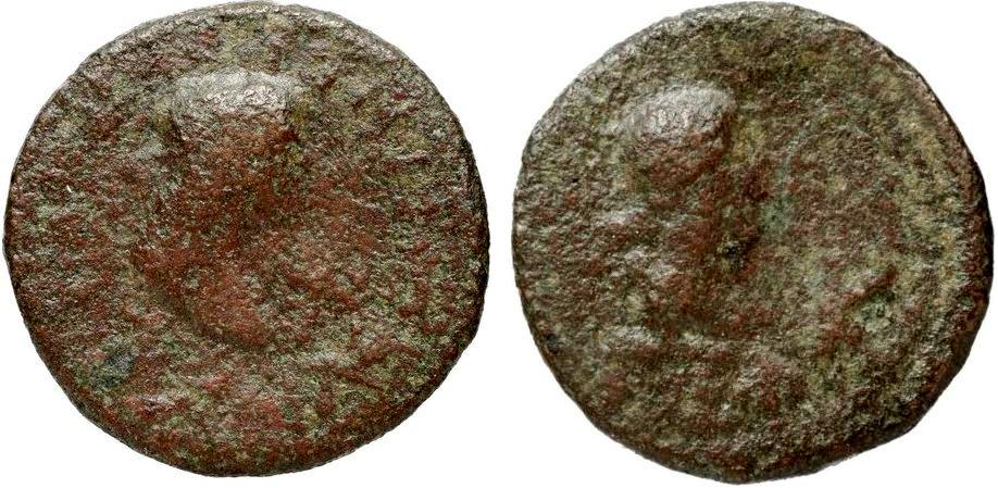 - Бюст императора вправо, внизу год ΓΞΦ (563 г. б. э.), справа К