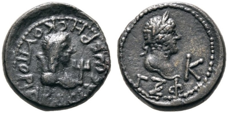 - Бюст императора вправо, внизу год ΓΞΦ (563 г. б. э.), справа К