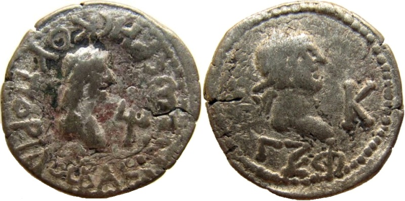 - Бюст императора вправо, внизу год ΓΞΦ (563 г. б. э.), справа К
