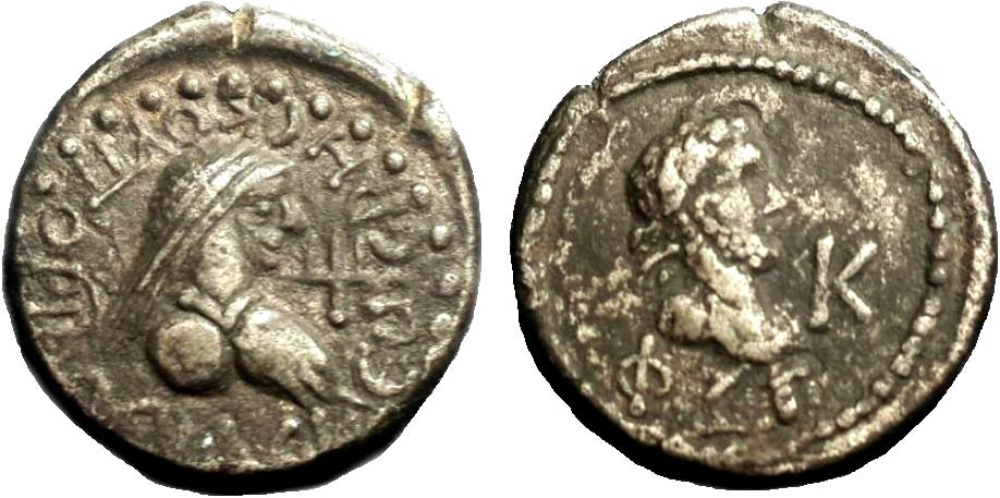 ГлавнаяКаталог монетПаспорт монеты Паспорт монеты: 714-4847-2 Дополнительная информация о монете Предоставил Oleg63.Комментарий:Номинал "статер" дан условно. ----------------------------------------------- Номер по каталогу Анохина В.А. (1986 г.) присвоен условно. Номер:714-4847 Количество монет в архиве:6 монет Центр чеканки:Пантикапей Период чеканки: по Анохину В.А. (1986 г.)266 — 267 год н.э. по Анохину В.А. (2011 г.) по Шелову Д.Б. по Фроловой Н.А.266 — 267 год н.э. по MacDonald D. по Шонову И.В. Правитель, годы правления:Рискупорид IV, 242/243-276/277 гг н.э. Материал монеты:Биллон Номинал:Статер Вес монеты:7.18 Диаметр монеты:21.0 Описание аверса:ΒΑCΙΛΕωC ΡΗСΚΟΥΠΟΡΙΔΟС. Бюст царя вправо, справа трезубец Описание реверса:Бюст императора вправо, год ΦΞΓ (563 г. б. э.) (ошибочно вместо ΓΞΦ), справа К Номер по каталогу: Анохина В.А. (1986 г.)714 Анохина В.А. (2011 г.) Шелова Д.Б.- Фроловой Н.А.Т.II, таб. LVI 14 MacDonald D.- Шонова И.В. Архив монет данного типа 714-4847-3 Пантикапей. 266 — 267 год н.э. Биллон Статер, вес 7.78 г, d21.0 мм 714-4847-1 Пантикапей. 266 — 267 год н.э. Биллон Статер, вес 6.76 г, d20.0 мм 714-4847-2 Пантикапей. 266 — 267 год н.э. Биллон Статер, вес 7.18 г, d21.0 мм 714-4847-4 Пантикапей. 266 — 267 год н.э. Биллон Статер, вес 0.00 г, d0.0 мм 714-4847-5 Пантикапей. 266 — 267 год н.э. Биллон Статер, вес 7.53 г, d21.0 мм 714-4847-6 Пантикапей. 266 — 267 год н.э. Биллон Статер, вес 0.00 г, d0.0 мм