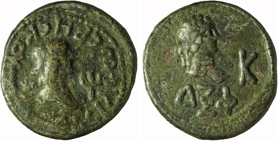 - Бюст вправо, год ΔΞΦ (564 г. б. э.), справа К