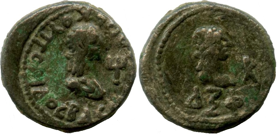 - ΒΑCΙΛΕωC ΡΗCΚΟΥΠΟΡΙΔΟC. Бюст царя вправо, справа «трезубец»