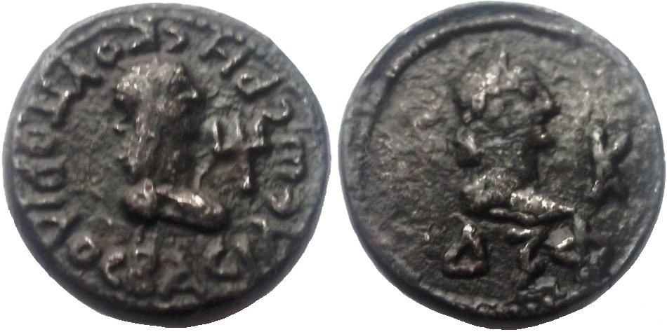 - ΒΑCΙΛΕωC ΡΗCΚΟΥΠΟΡΙΔΟC. Бюст царя вправо, справа «трезубец»