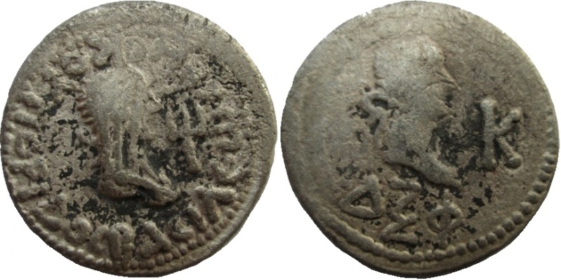 - Бюст вправо, год ΔΞΦ (564 г. б. э.), справа К