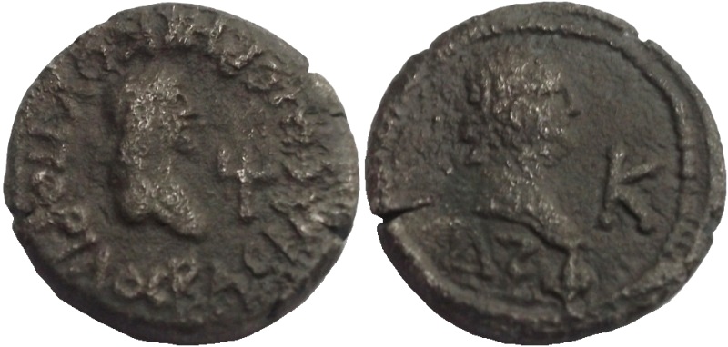 - Бюст вправо, год ΔΞΦ (564 г. б. э.), справа К