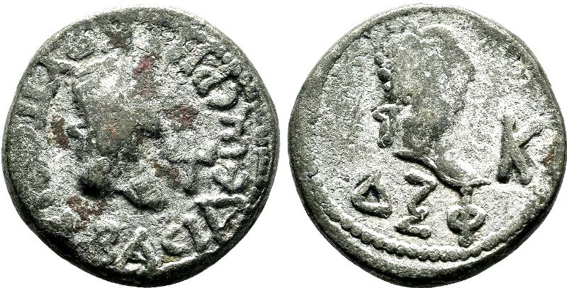 - Бюст вправо, год ΔΞΦ (564 г. б. э.), справа К