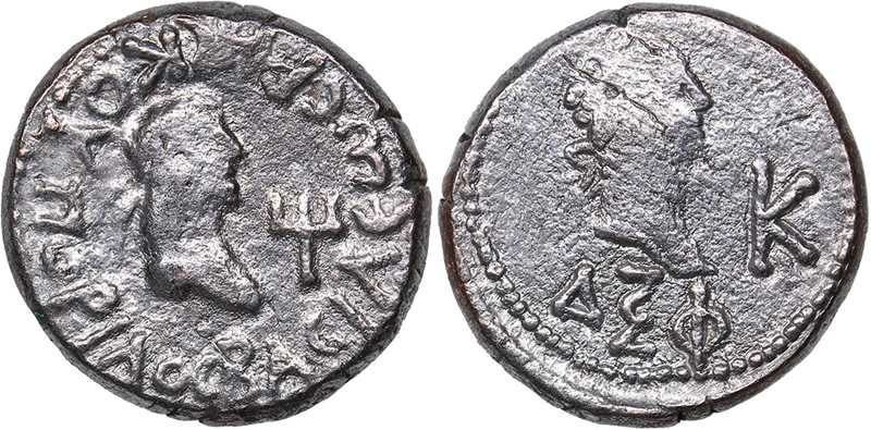- ΒΑCΙΛΕωC ΡΗCΚΟΥΠΟΡΙΔΟC. Бюст царя вправо, справа «трезубец»