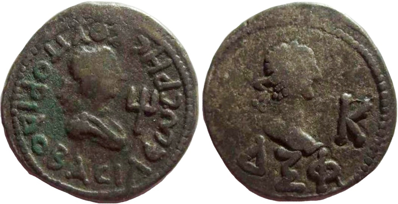 - Бюст вправо, год ΔΞΦ (564 г. б. э.), справа К