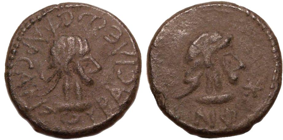 - Бюст императора вправо, год ΝΦ (550 г б.э.), справа «звезда»