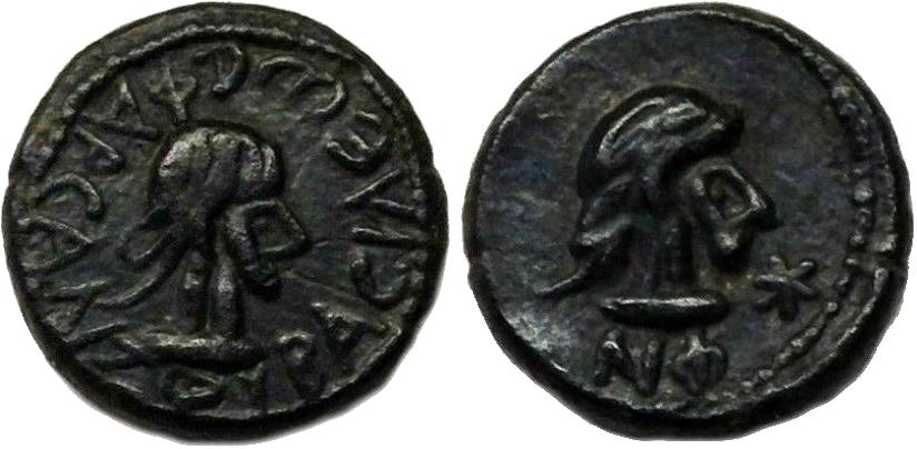 - Бюст императора вправо, год ΝΦ (550 г б.э.), справа «звезда»