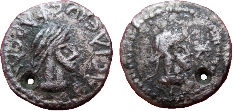 - Бюст императора вправо, год ΝΦ (550 г б.э.), справа «звезда»