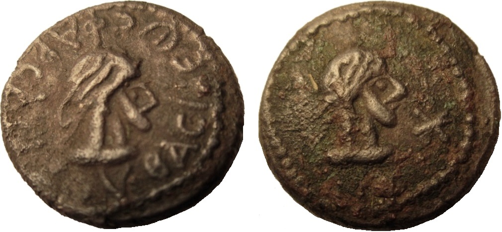 - Бюст императора вправо, год ΝΦ (550 г б.э.), справа «звезда»